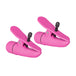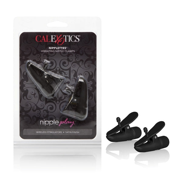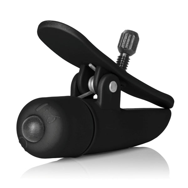 The nipple clampsare made from ultra silky smooth ABS with PU Cote and have a sleek design. The vibrating clamps measure 2.75”/7 cm and have a high-intensity wireless motor with easy push button control, for instant arousing fun. Nylon screws allow you to adjust the clamp fit for perfect satisfaction. To power up the sensitive pleasure, push the button located at the end of each clamp and experience tantalizing tingles and mind-blowing sensations. To maximize the unforgettable experience, apply a small amount of quality lube or arousal gel to the nipple, before securing the clamps.