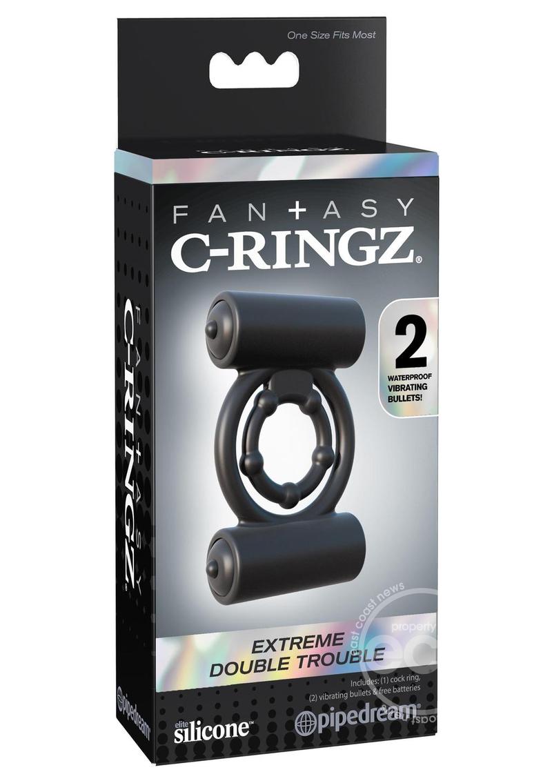 Fantasy C-Ringz Silicone Extreme Double Trouble Cock Ring with Bullets - Black