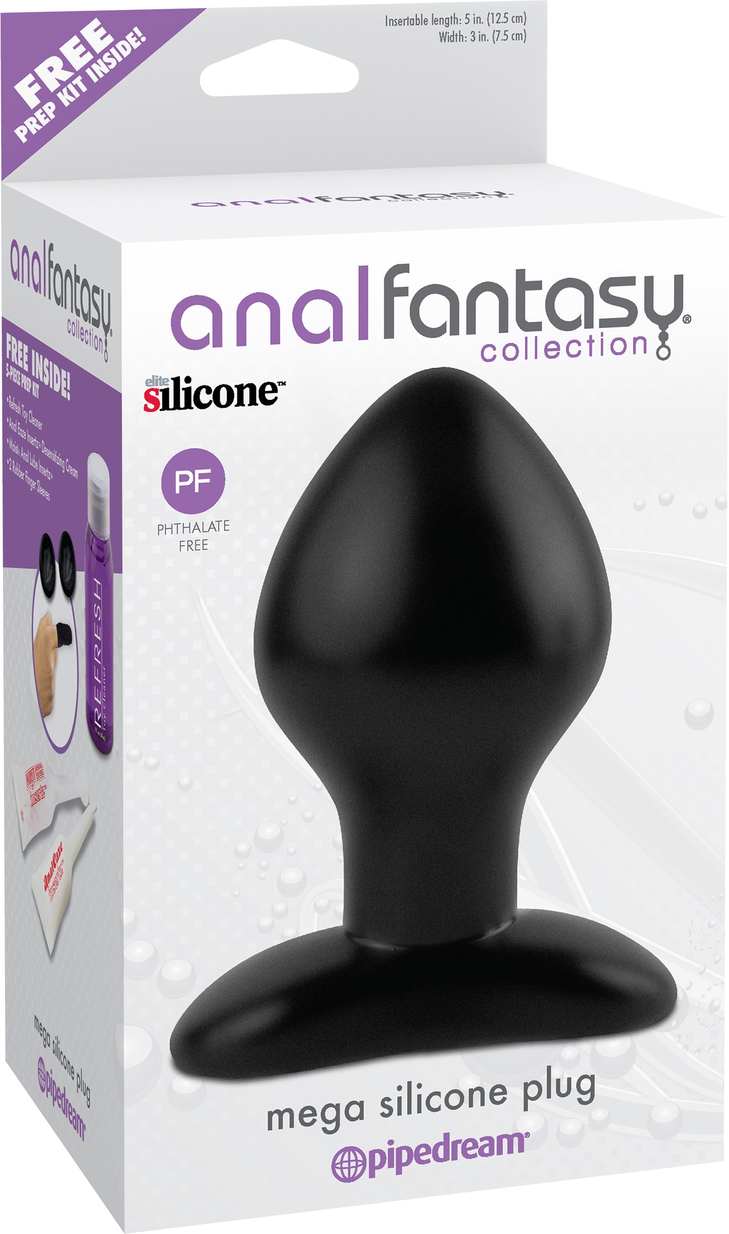 At 3" wide with an insertable length of 5", the Mega Silicone Plug has a tapered tip for easy entry, a bulb that provides extra sensation, and a narrow neck that allows your muscles to wrap around and hold it in. The ergonomic design of the base ensures it wont slip too far inside while still fitting comfortably between your cheeks.