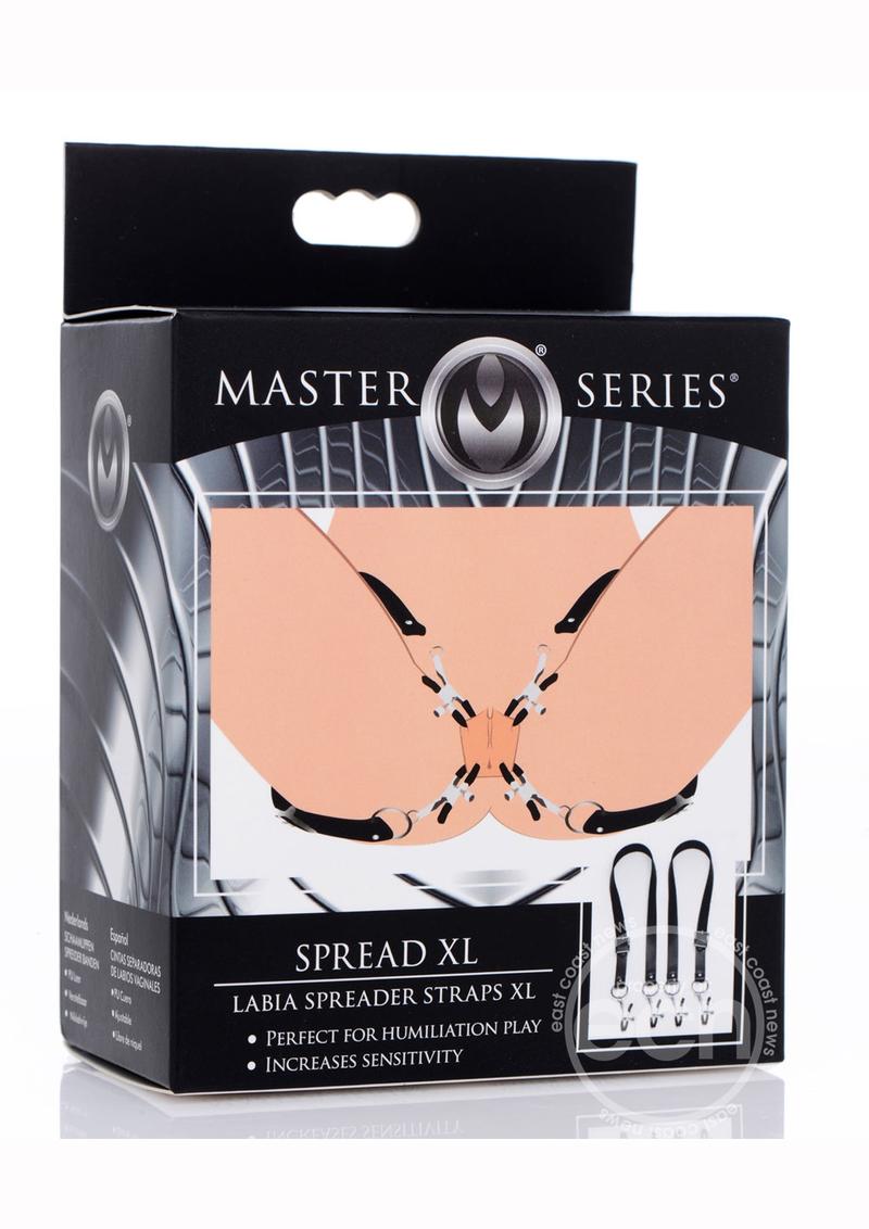 Adjustable pressure clamps and straps, fully adjustable Spread em wide! This Extra Large Labia Spreader is designed to open your lovers vagina and put their sensitive parts on display for your enjoyment. The adjustment screws found on each clamp let you control the clamping pressure with ease, while the straps themselves can be customized to fit most leg and waist sizes.