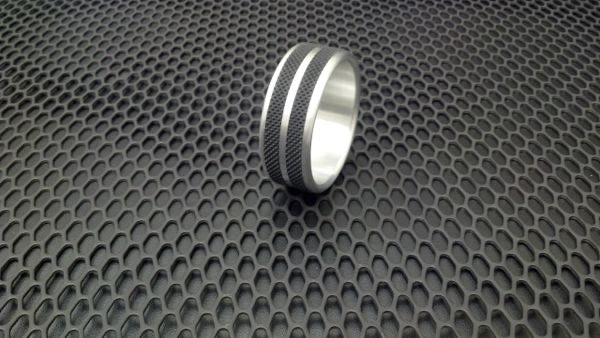An added rubber insert in the aluminum ring has a cool unique look to them. They are super comfortable and heat up with your body.