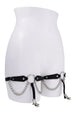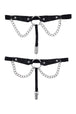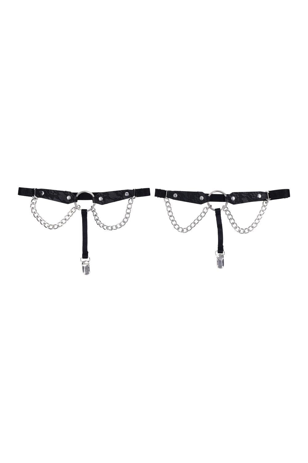 Elevate your look with a touch of elegance and edge in this sexy pair of Chain Lace Garters. Featuring lace-etched faux leather that combines comfort and durability, these garters exude sensuality while keeping a refined charm. A striking metal ring at the center infuses the design with boldness. Draped chains cascade effortlessly, adding a sultry yet graceful element. Designed for both style and function, the secure clip ensures your thigh-high stockings stay perfectly in place. Perfect for capturing attention or indulging in intimate moments, these garters strike the ideal balance of daring sophistication. Fits thighs 16" - 24" (40 cm - 61cm) Draped chain offers an extra layer of sultry sophistication Built-in clip to secure stocking placement Materials: 40% Polyurethane, 30% Iron Alloy, 30% Polyester