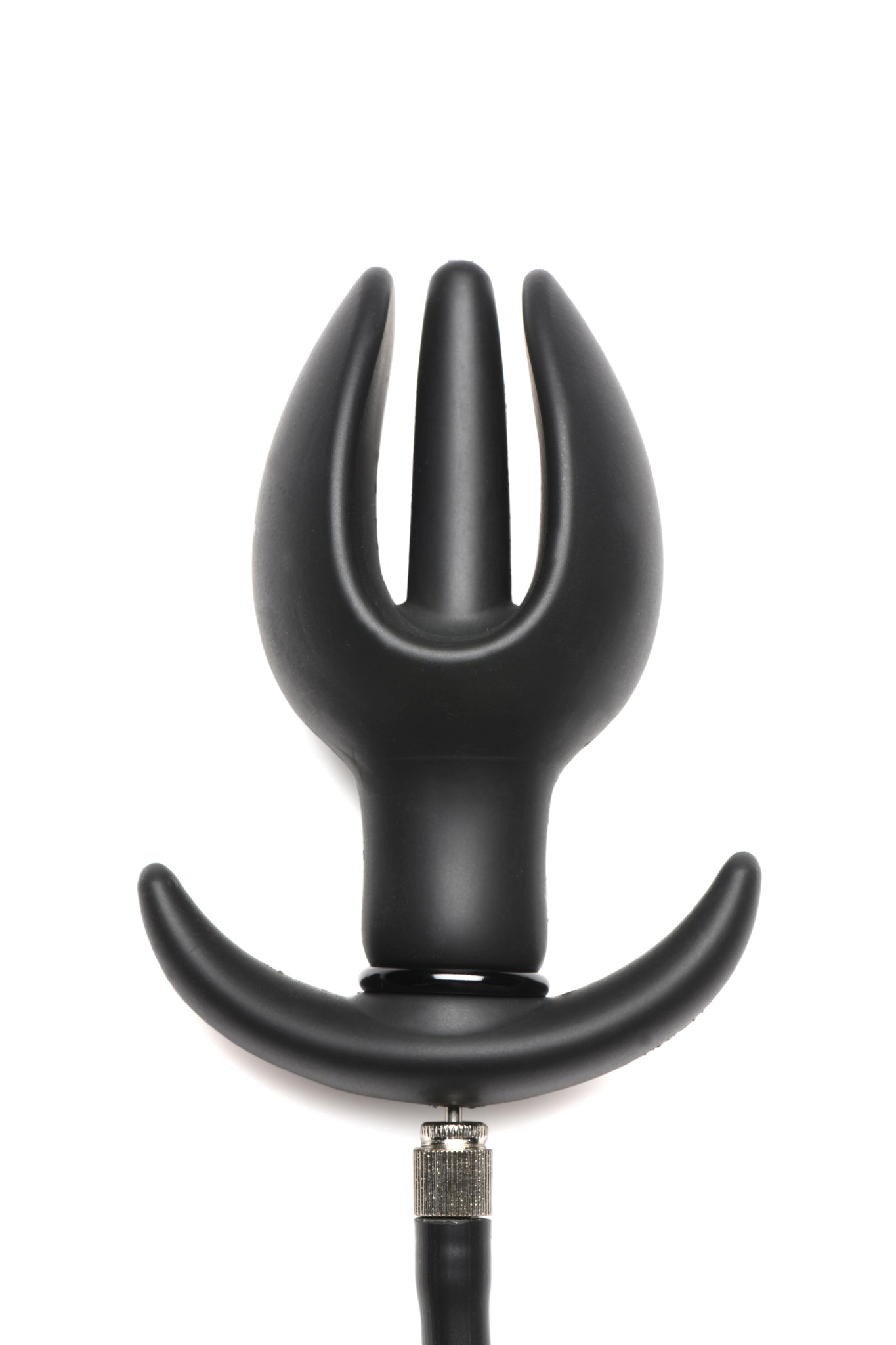 - Anchor-shaped inflatable silicone plug that starts at dimensions of less than 2 inches in diameter and 3 inches in length, but can expand to about 5 inches in length and 5.5 inches in width.