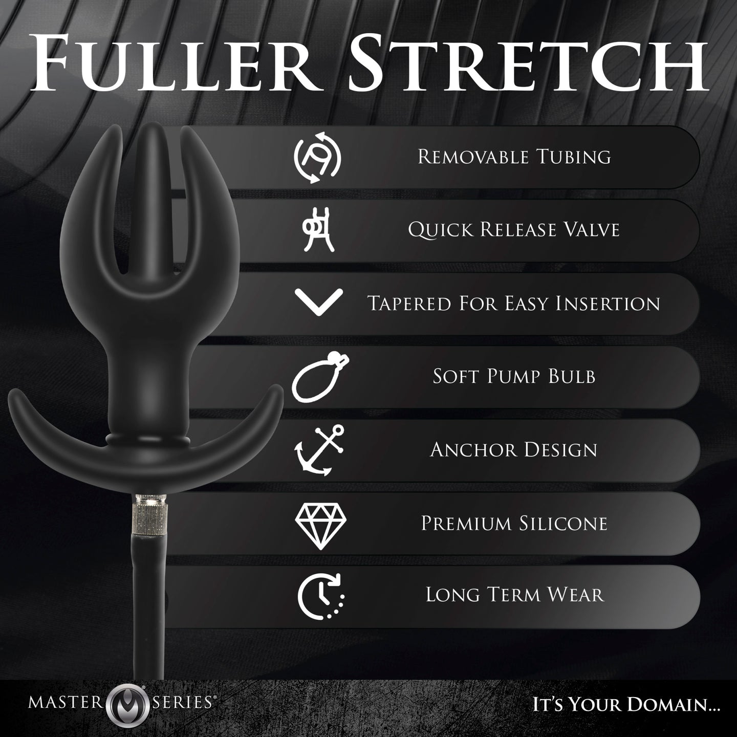 Introducing the Master Series Bad Buoy Anchor Inflatable Anal Plug by XR Brands, designed for prolonged wear. Experience heightened sensations with this innovative inflatable plug. Crafted from smooth silicone, its anchor-like design with a tapered center makes insertion a breeze. Initially measuring 3.2 inches in length and 1.8 inches in width, this Bad Buoy Plug can expand up to 5 inches in length and a thrilling 5.5 inches in width. As it inflates, it creates a delightful internal pressure, stimulating the internal sphincter while its flanged base ensures it remains securely in place.