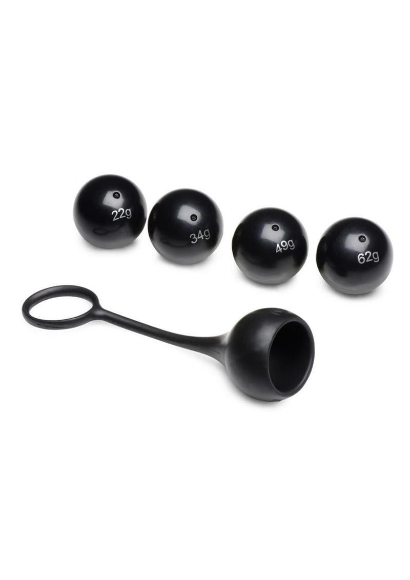This dark dangler hangs from the corona so you can add weights to your shaft! Test your strength with 4 different steel weights ranging from 0.8oz (22g) to 2.2oz (62g)! The ring and ball holder cup are made from stretchy, phthalate-free, premium silicone. After use, simply wash with warm water and soap then spray with a toy cleaner before storing.