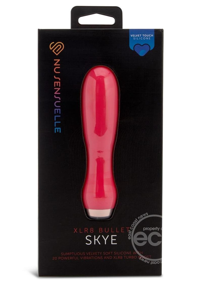 Skye is wrapped in luxurious ultra-soft silicone and engineered with 20 mighty settings and rush-inducing XLR8 turbo boost, this internal and external vibe, will rocket you into the pleasure stratosphere. Skye is water submersible, rechargeable and made with body-safe liquid silicone without latex or phthalates. Rechargeable and water submersible. 2-year warranty.