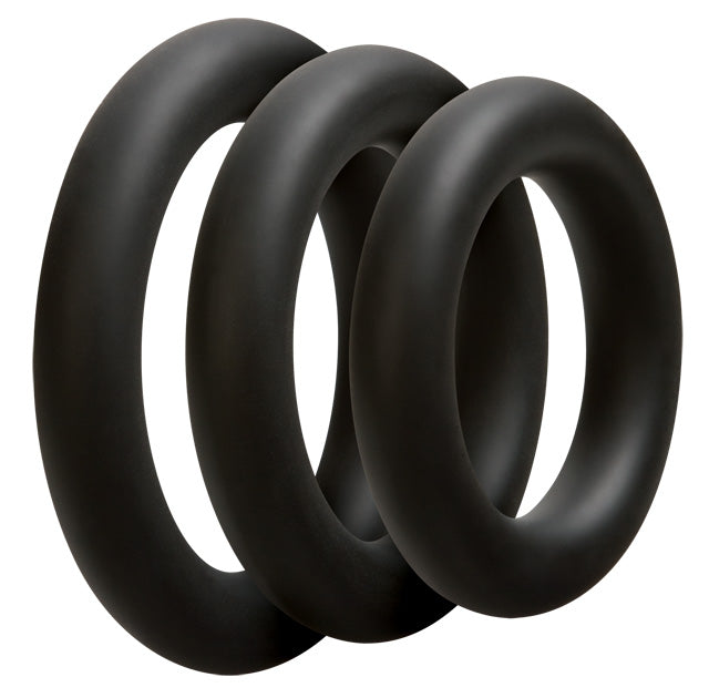Doc Johnson Novelties Optimale Men's Sexual Health and Wellness line. Optimize your experience with these silicone cock rings! The Optimale Thick C-Ring Set offers enhanced size and girth with three rings in 40mm, 45mm, and 50mm diameters. These rings are ultra-stretchable for easy use around the shaft or testicles, maintaining those long-lasting erections you have always dreamed of, and prolonging your ejaculation.