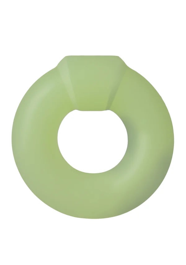 From Doc Johnson, This classic circle shape has an additional knob that applies pressure behind the scrotum for an ultimate climax. The Mega Ring's phthalate-free, body-safe, glow-in-the-dark material keeps the bedroom aglow as long as you last. Approximate Product Dimensions: C-Ring, Width/Diameter: 2 in. (5.1 cm), Unstretched Inner Diameter: 0.9 in. (23 mm), Depth: 0.7 in. (18 mm)