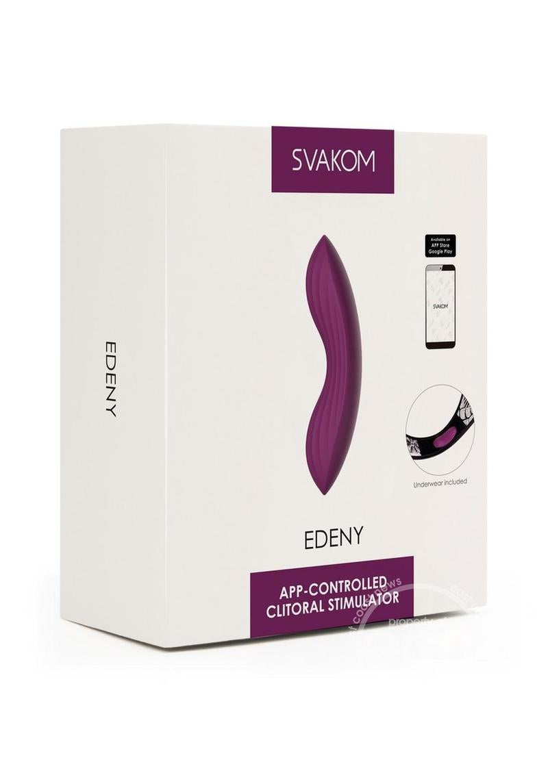 Experience lust and luxury with SVAKOM's Edeny, our App-controlled clitoral stimulator. The seductive tongue shape provides both an attrctive design and blissful stimulation. Designed for partnered use Edeny fits perfectly within the accompanying exclusive underwear, allowing for App controlled fun for use over long distances, or during a romantic restaurant meal.