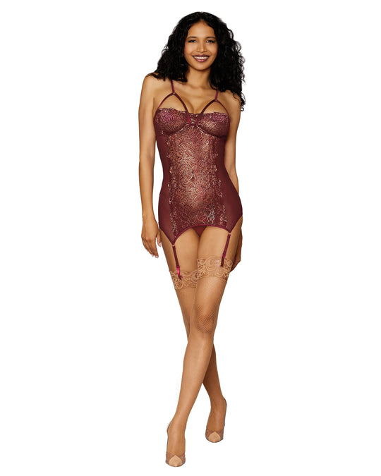 Dreamgirl Gold Foiled Stretch Lace and Mesh Garter Slip