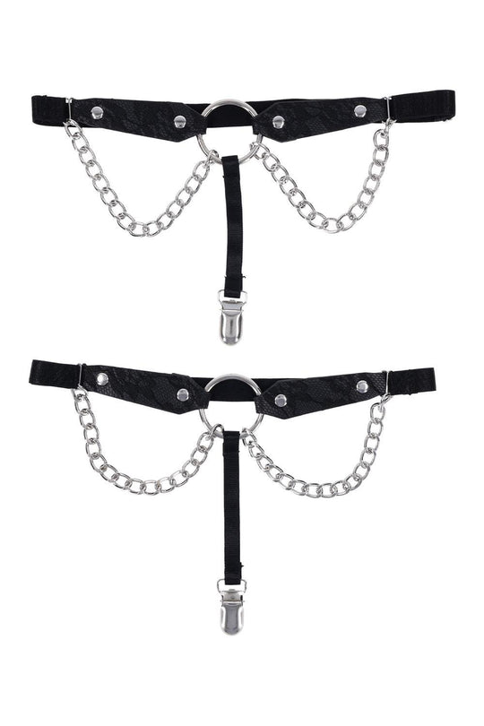 Elevate your look with a touch of elegance and edge in this sexy pair of Chain Lace Garters. Featuring lace-etched faux leather that combines comfort and durability, these garters exude sensuality while keeping a refined charm....Regular price $39.00 -