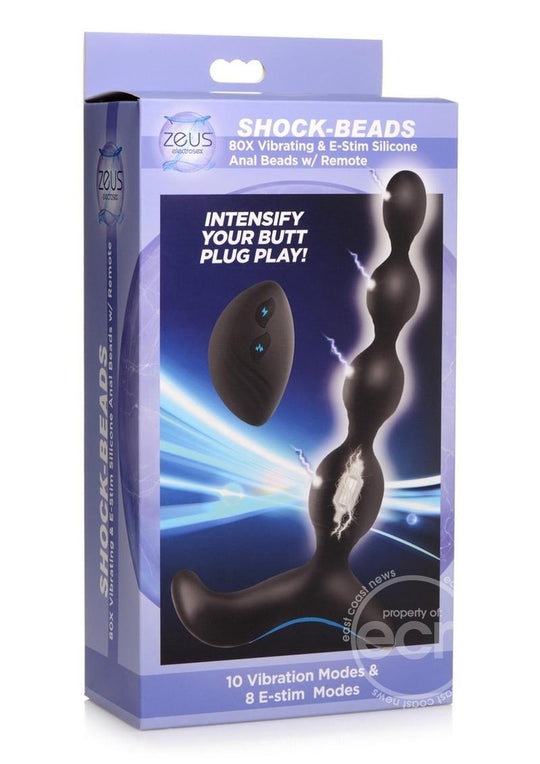Zeus Shock Beads 80X Vibrating & E-Stim Rechargeable Silicone Anal Beads with Remote Control