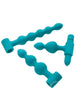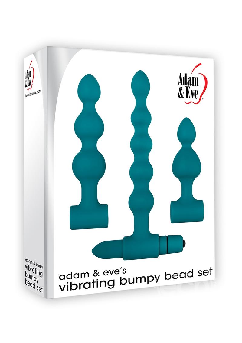 Delight your backdoor with 3 bumpy vibrating anal plugs. Each ultra-smooth silicone plug comes in a unique shape designed for maximum anal thrills. Go wide with the bulbous short plug. Go deep with the slim & beady long plug. Or get the best of both bumpy worlds in the medium plug. Choose your fave, then slip a powerful waterproof 7 function bullet vibe into the base to make the plug vibrate! This sexy set gives you so many ways to enjoy big backdoor fun. Clean up with Adam & Eve toy cleaner and a hot water rinse.