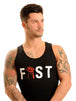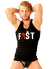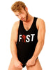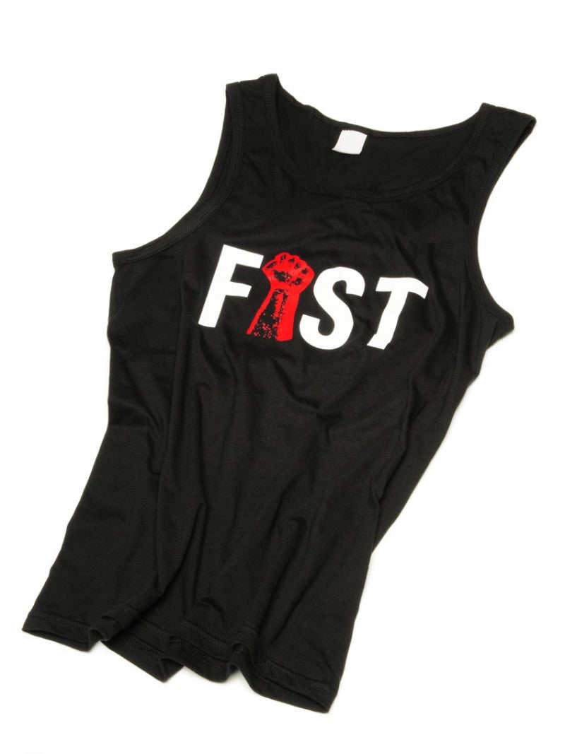 100% black cotton fitted tank top with iconic FIST logo printed front and centre in red and white. Available in 4 sizes.