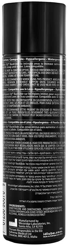 - FINEST PREMIUM QUALITY SILICONE – ID Backslide is a premium quality silicone-based lubricant for men, women and couples.