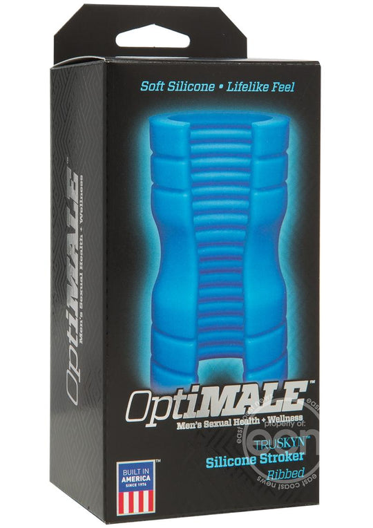 OptiMALE Ribbed Truskyn Silicone Masturbator - Blue