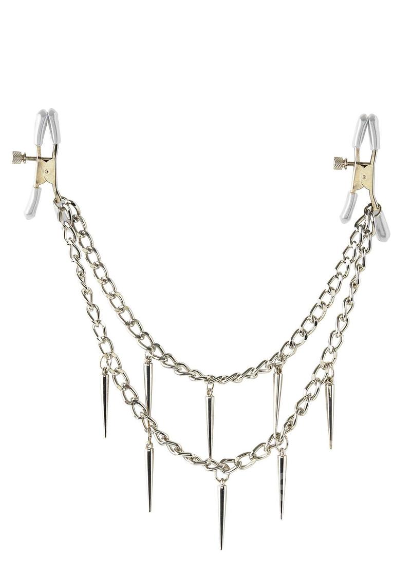 Make your nipples perk with pleasure with these Rock Hard Nipple Clamps. Made with durable metal clips and covered in soft rubber liners, these clamps are perfect for beginners and fetish enthusiasts alike. The amount of pressure you apply to the nipple is adjustable by turning the screw, while the two chains give you subtle stimulation with each movement.