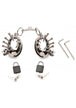 Test your masochistic edges with these scrotum CBT egg shells with spikes! The eggs are made entirely of stainless steel so they are durable, long-lasting and easy to sanitize. The metal is also sensitive to temperature so you can heat or cool them for extra sensation! Each egg fits around the testicles and there is a spacer of 0.36 inch width where the scrotal sac goes. The testicles go inside the eggs and then the device closes around the testes using a hinged pin. To lock the testes in place close the hinge and begin tightening the nut down on the screw. This should reveal a small hole in the pin where you can place one of the two included locks on the pin and lock the egg into place. To add pressure and pain, tighten any of the screws that surround the eggs. To add an even more sadistic twist, add a weight to the small, metal bar that connects the two eggs attach the weight to the small O-ring at the center of the bar. After use, wash with warm water and soap and spray with a toy cleaner. For serious sanitation these items can be placed in a dishwasher or soaked in a cleaning solution.