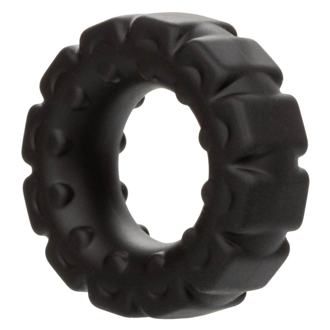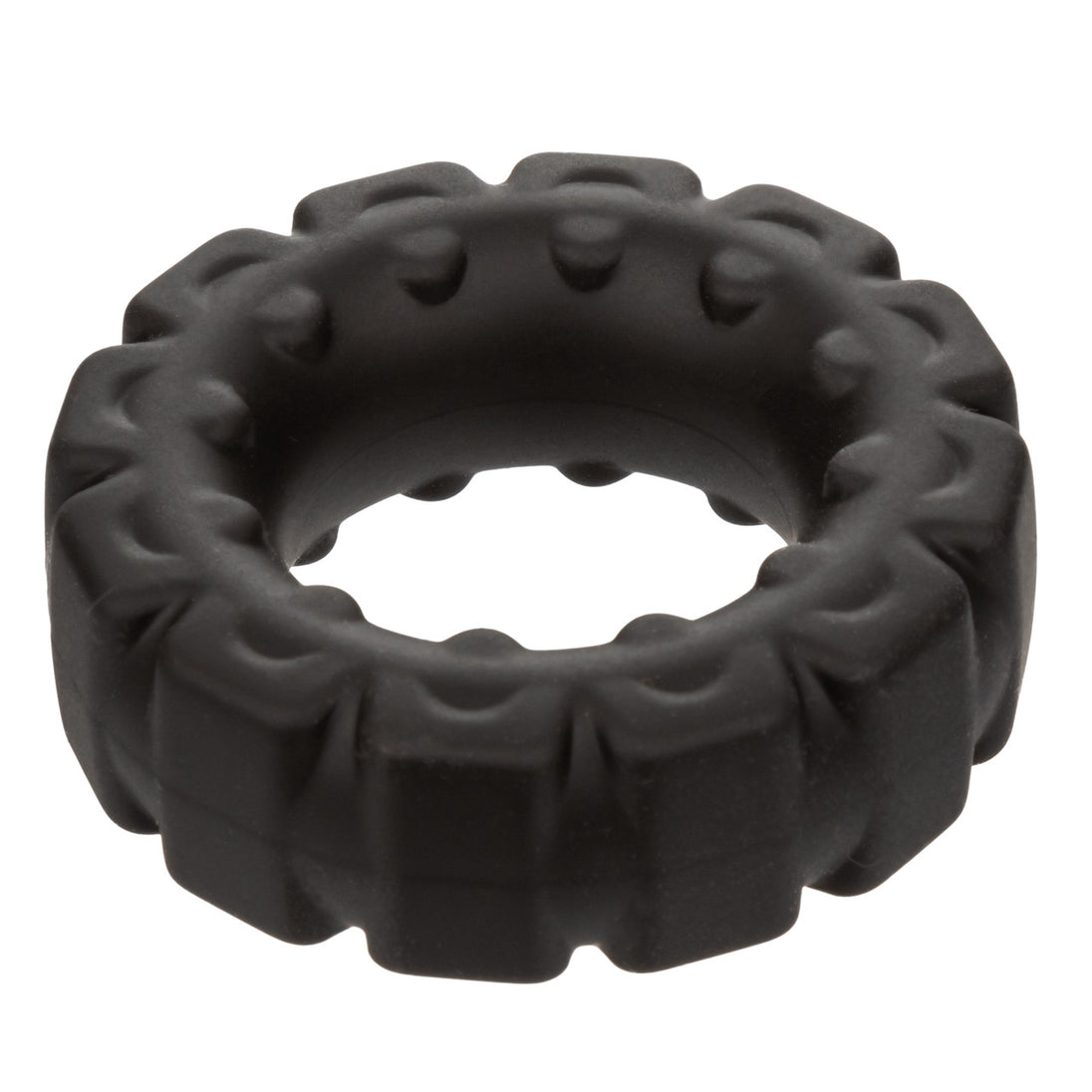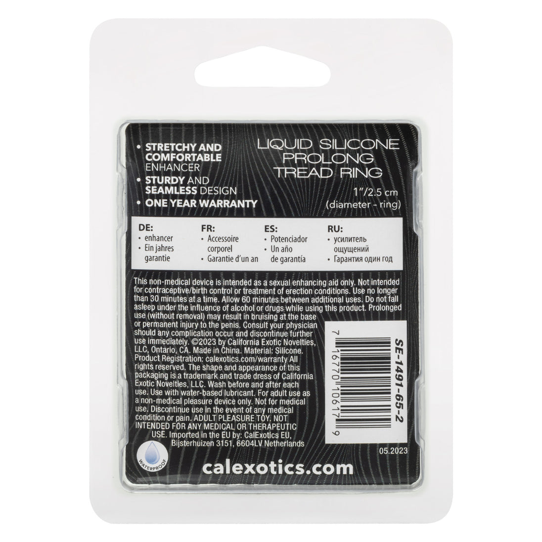Alpha Liquid Silicone Prolong Tread Ring from California Exotic Novelties. Introducing the Alpha Liquid Silicone Prolong Tread Ring, a premium enhancer designed to enhance your intimate experiences and maximize pleasure. Made from high quality Liquid Silicone, this ring offers a stretchy, comfortable, and seamless design. The Liquid Silicone material provides a softer and smoother feel, ensuring a luxurious and enjoyable experience. Its sturdy construction ensures durability for long lasting use. The ring is specifically designed to enhance your performance and prolong your pleasure. By maintaining a firmer and longer lasting erection, it helps you and your partner indulge in more satisfying intimate moments together. With its waterproof feature, this ring can be used in various settings, including the shower or bathtub, allowing you to explore new sensations and experiences. Experience the ultimate in comfort, durability, and pleasure with the Alpha Liquid Silicone Prolong Tread Ring. Elevate your intimate encounters and unlock new levels of satisfaction with this premium enhancer. Specifications: SKU SE-1491-65-2. Color: Black. 1 Year Warranty. Features: Wearable, Phthalate free. Waterproof, non-vibrating cock ring. Material type: Silicone. Measurements: 1 inch in diameter ring. Bulk weight 0.7 ounce. Package: 1.4 ounces. Package: 1 inch by 4.25 inches by 4 inches. Categories: Sex Toys for Men, Couples Cock Rings, Sleeves, Rings, Men's Cock and Ball Gear. 2024.