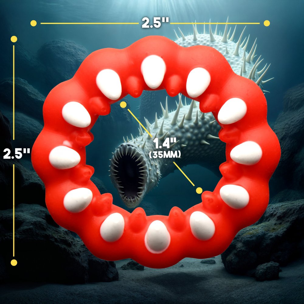 • Fantasy C-Ring: Explore dangerous oral fixations with a ring of teeth wrapped around your shaft! The ring itself is the pinkish color of gums and the teeth are pure white and pointed like fangs!