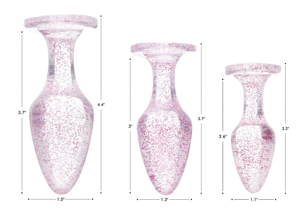 Expert anal players will appreciate the ease of which to warm up their ass for further fun with this Glittery set of plugs! Choose the size that matches your comfort level and surprise your lover when you pull your pants down with this dazzling anal gem!