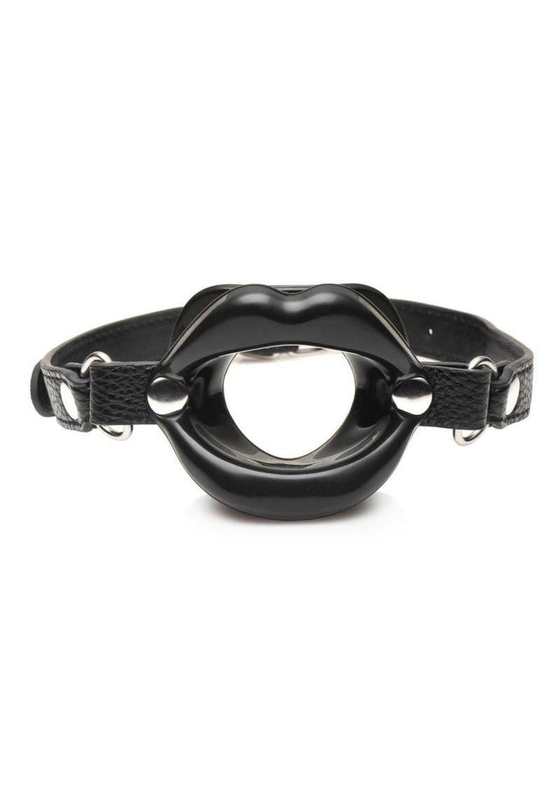 Step up your kinky sessions with an open-mouth gag crafted for those who want full access to that gorgeous, wet mouth of their submissive partner. This naughty gag features large lips and a tunnel that keeps the jaw open. It stay in place with an adjustable strap with a sturdy buckle, giving you precise control over fit and comfort. Perfect for those with sensitive skin, its nickel-free metal parts ensure a hypoallergenic experience. Wrapped in vegan leather, it not only looks good but feels great too. This gag is your go-to accessory for keeping your mouth available and open, allowing for uninterrupted fun and a touch of classic elegance in your collection. You tighten the buckle around the back of their head and then tilt their chin to look up at you. The light from above shines into their mouth; you can see all the way back to that pink throat of theirs. The huge lips exaggerate the mouth and make it even more inviting. It's just asking to be filled with something, so you oblige and put something inside of it. As you slip your rod in their mouth hole, they gag a little and you back out. They blink back tears, but they're still eager, so you go back to it and enjoy using them as your personal toy! Measurements: Strap adjusts from 16.2 inches to 23.6 inches in circumference. Gag opening diameter is 1.5 inches. Materials: Silicone, vegan leather, metal Color: Black Key Features: Keeps Mouth Open: Keep that mouth available and open for all kinds of fun! Adjustable Strap: Adjust tightness using the buckle closure. Nickel-Free Metal: Greatest for sensitive skin! Vegan Leather: Enjoy the classic look and feel of