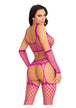3 Pc Net Crop Top, Garter Stockings, And Matching Gloves. Fuchsia O/S