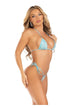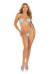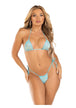2 Pc Rhinestone Bikini Top And Side Tie Thong Panty. Baby Blue O/S
