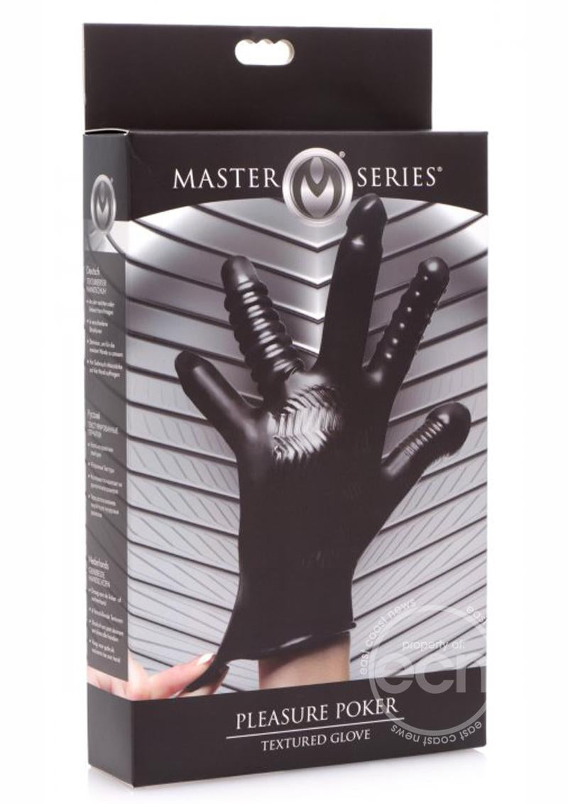 This textured glove is so versatile that it may become a staple in all of your sexual experiences! So many ways to use... finger, stroke, massage, or spank. Whether you are male or female, playing solo or with a partner, this glove will show you love! Each of the five fingers is uniquely shaped for a range of sensations during anal or vaginal insertion: smooth and tapered, bold ridges, penis-shaped, raised nubs, or bulbed with subtle ribbing. The palm has a zig-zag tread that brings extra excitement to a handjob or masturbation. Give your lover a sensual massage with the variety of textures or add a new element to your spankings! This double-sided glove works on both hands and is compatible with silicone and water-based lubricants. Clean with mild soap and water.