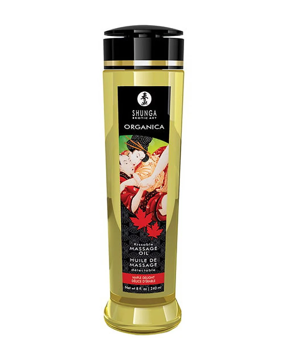 Organica Kissable Massage Oil Maple Delight from Shunga. The sensual pleasure of touching and being touched quickly heats up with this luscious oil that glides over the skin like silk. Benefits: 100% certified organic ingredients. 100% natural cold pressed oils. Non greasy. Will not clog pores. Contains no mineral or animal oil. Directions: Pour a small amount into the palm of your hand and rub your hands together to bring the oil to body temperature. If desired, you can heat the oil in hot water for an even hotter touch. Ingredients: Cold Pressed Sunflower Oil, Grapeseed Oil*, Avocado Oil, Sesame Oil, Natural Vitamin E Tocopherol. *Certified Organic. Categories: Erotic Body Lotions, Health and Beauty Aids, Massage Lotions, Creams, Oils. 2023.
