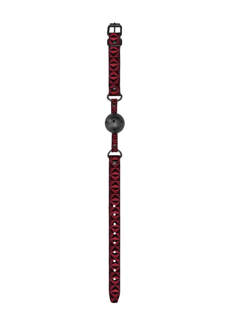 Silence your partner with this OUCH! Ball Gag, which is perfect for beginners and experienced bondage players alike. This tough phthalate-free ball gag comes with metal O-rings and has an adjustable buckle featuring 9 holes for easy adjustment. It measures 62 cm (24.4") in length and 2.5 cm (1.74") in width. The ball has a diameter of 4.4 cm (1.74"). Made from neoprene and faux-Leather, with an exquisite diamond pattern.