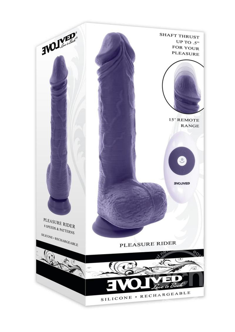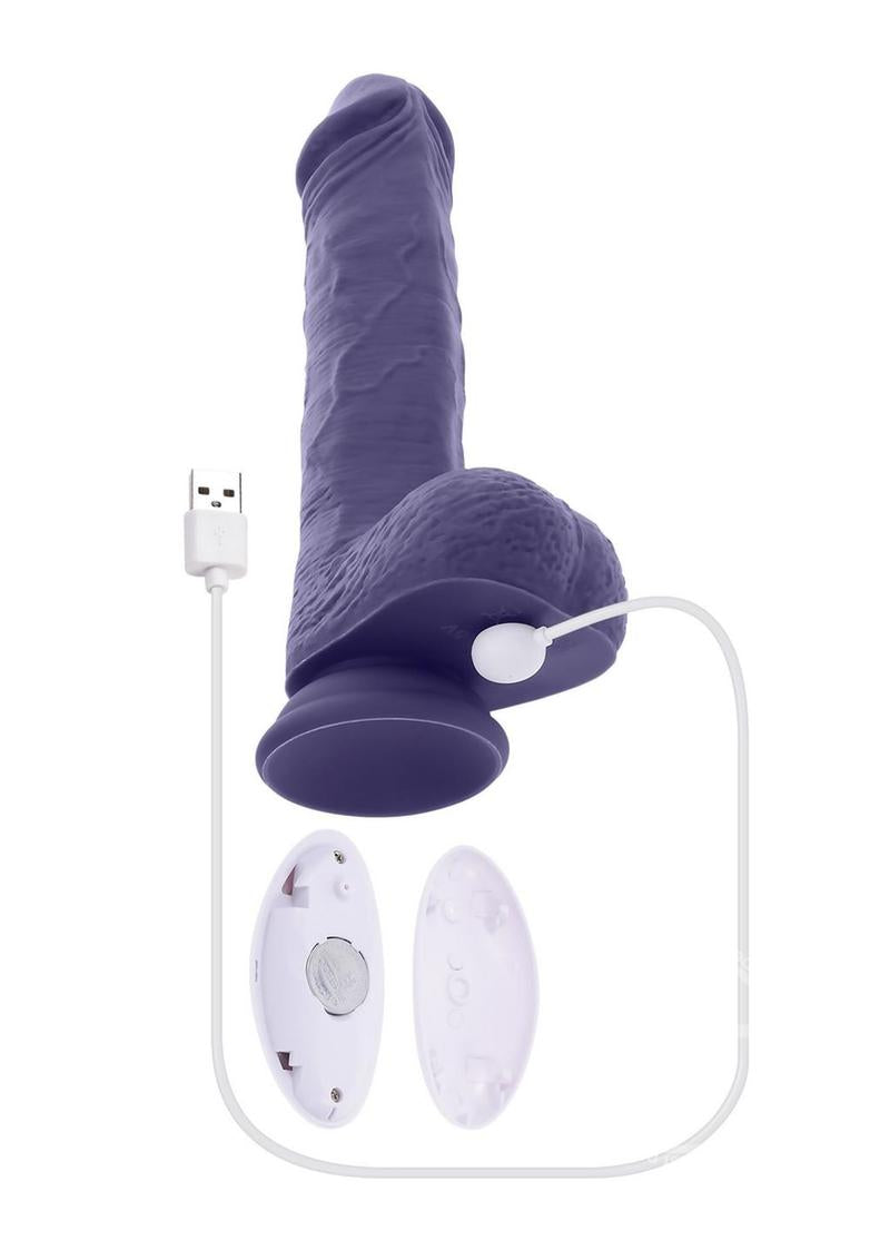 Experience deep satisfaction with this large thrusting vibrator that’s crafted with a life-like crowned head and realistic vein textures. The girthy shaft made from soft and stretchy silicone thrusts with exhilarating multi-speed power and is designed for hands-free possibilities with a robust suction cup base and ergonomic remote control.