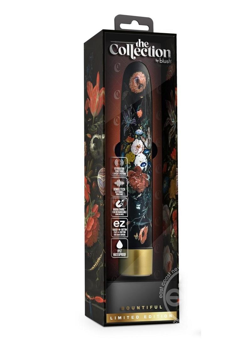 Introducing The Collection Bountiful, the ultimate slimline vibrator designed to elevate your pleasure. With RumbleTech technology, experience deep, rumbly vibrations and indulge in 10 vibration functions. With 5 speeds and 5 patterns to choose from, you can customize your pleasure to perfection. Bountiful is designed with a raised plus button for better control. Easily navigate through the various vibration functions in the dark, either on your own or with a partner. Say goodbye to batteries with Magna Charge™ USB Rechargeable technology. Take your pleasure to new depths with the IPX7 Waterproof feature of Bountiful. The Bountiful is not just a sex toy, it's an invitation to your own personal paradise. Embrace your desires and discover the Bountiful pleasure you deserve!
