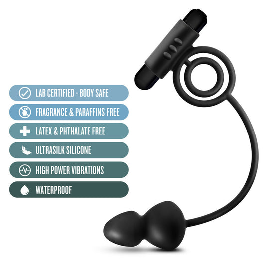 Anal Adventures Platinum Silicone Anal Plug with Vibrating Cock Ring - Black