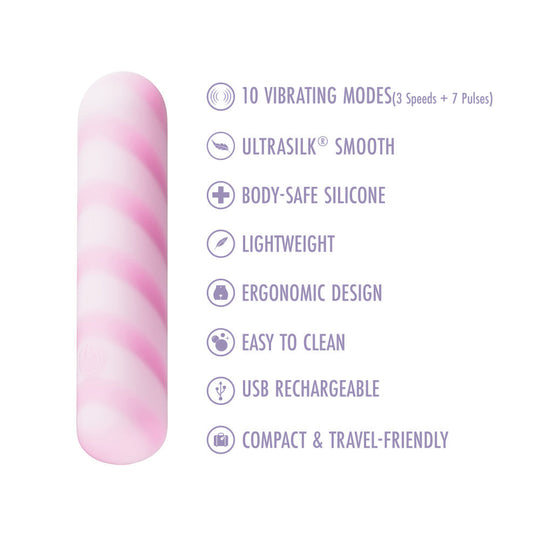 10 Sweet & Sassy Vibrations (3 Speeds & 7 Patterns) Soft & Bendable Design For Luxurious Comfort 100% Body-Safe Silicone, UltraSilk® Satin Smooth IPX7 Waterproof, Pocket-Sized, Travel-Friendly Easy One-Button Control & USB Rechargeable Compatible With Tester...Regular price $50.00 -