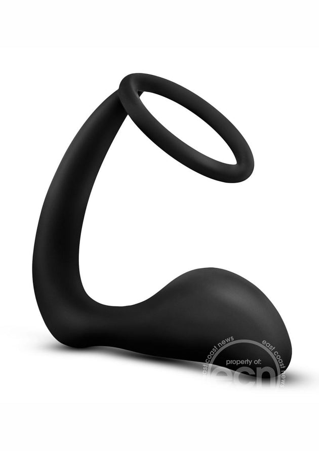 Anal Adventures Platinum Silicone Cock Ring and Butt Plug - Black
