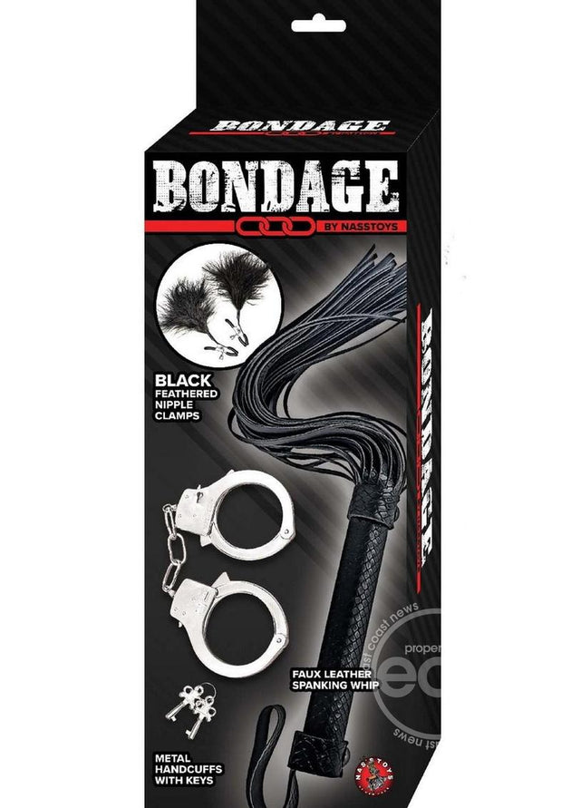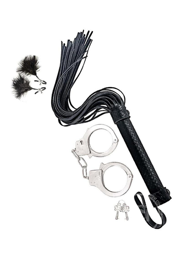 Nasstoys Bondage Whip Feather Clamps and Cuffs Kit - Black