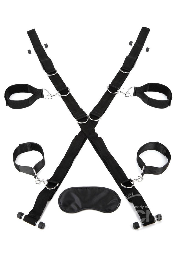 Lux Fetish Over The Door Cross with 4 Universal Soft Restraint Cuffs - Black