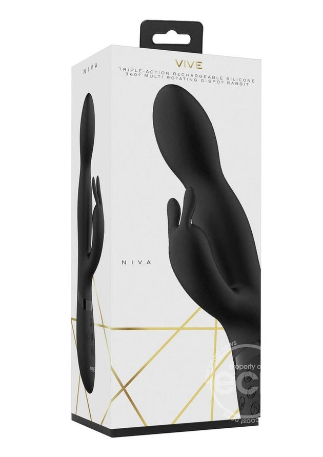 Vive Niva 360 Degrees Rechargeable Silicone Rotating G-Spot Rabbit Vibrator - Black