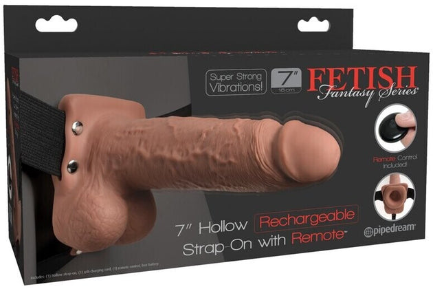 FETISH FANTASY 7 IN HOLLOW RECHARGEABLE STRAP-ON REMOTE TAN