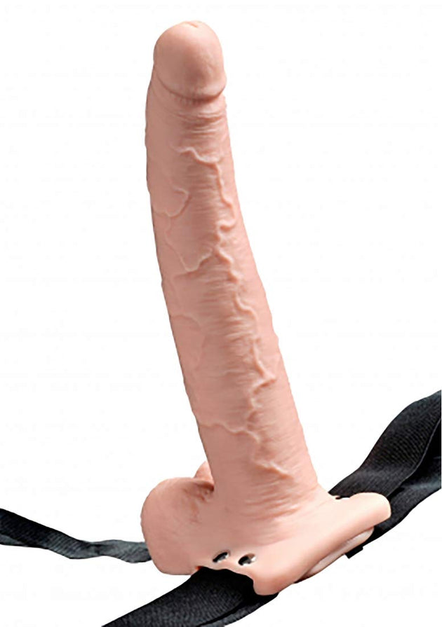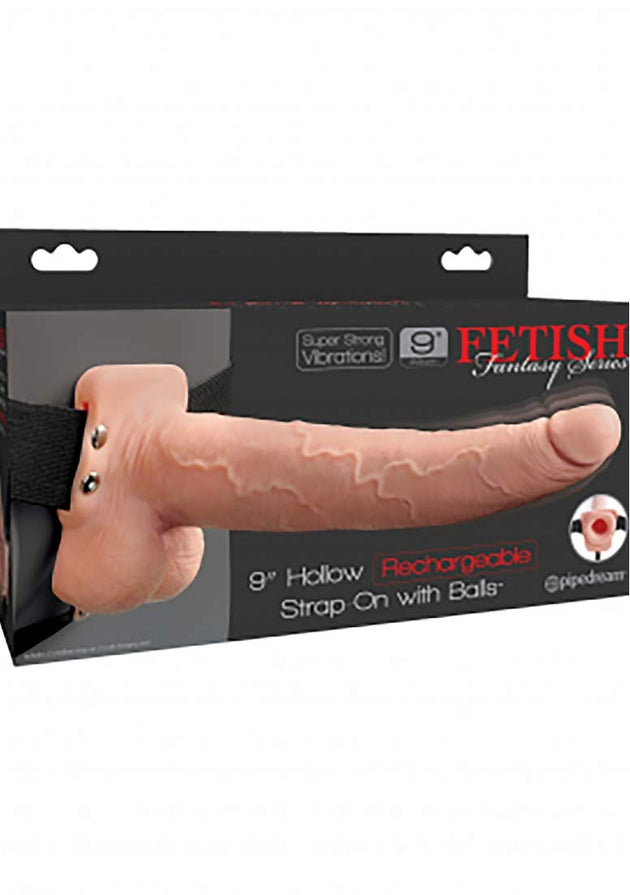 FETISH FANTASY 9 IN HOLLOW RECHARGEABLE STRAP-ON W/ BALLS