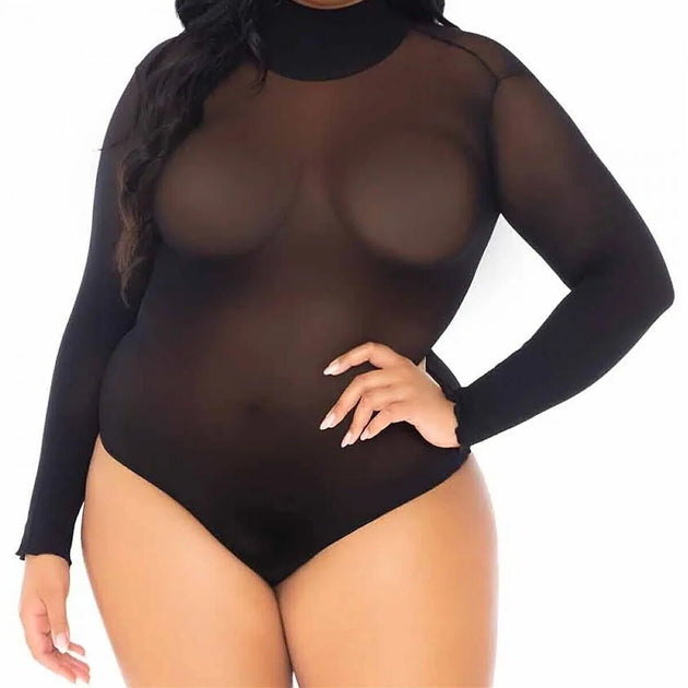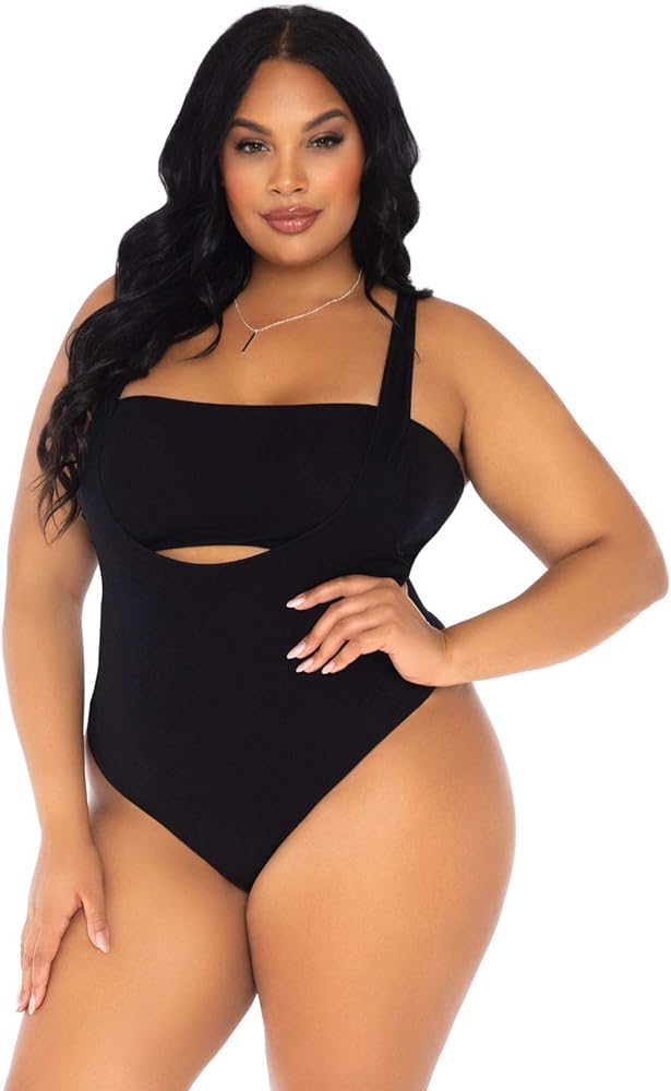 LEG AVENUE 2 PC BANDEAU AND SUSPENDER BODYSUIT - PLUS - BLACK