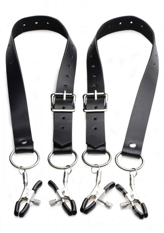 Master Series Spread Labia Spreader Straps with Clitoral Clamps - Black