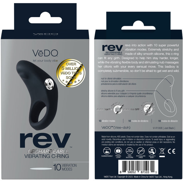 VeDo Rev Silicone Rechargeable Vibrating Cock Ring - Black