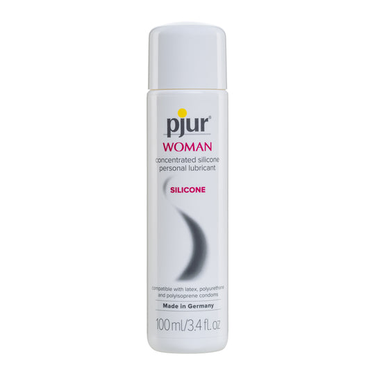 Pjur Woman 100ml e or approximately 3.4 ounces is specially formulated for women's soft and sensitive skin. Provides extra long lasting lubrication for massage. Pjur Woman is a softer, less viscous formula that provides extra long...Regular price $35.00 -