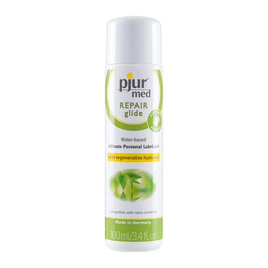 Pjur Med Repair Glide 100ml e or 3.4 fluid ounces. Water based lubricant with natural ingredients that regenerate skin and mucous membranes thanks to its intensive moisturizing properties. Hyaluronic acid provides maximum moisture and long lasting...Regular price $21.99 -