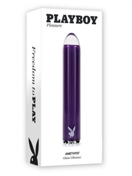 Indulge your gemstone fantasies with the dazzling Amethyst Vibrator. Its state-of-the-art motor amps up to 10 speeds and rhythms while the smooth pointed glass tip creates a delicious sensation, gliding with ease across your hot zones. Navigate securely with the diamond-pattern base that features the iconic Playboy bunny. Panel Details Play with me (key feature): Vibration, glass tip Vibration: 10 speeds & rhythms Material: Body-safe Silicone & Borosilicate Glass; Phthalate & Latex free Waterproof: Yes Warranty: Five years Magnetic Rechargeable: USB cable included Size Specs Height: 4.87“, Depth: 0.81", Width: 0.81" Insertable length: 4.25” Insertable diameter: 0.81”