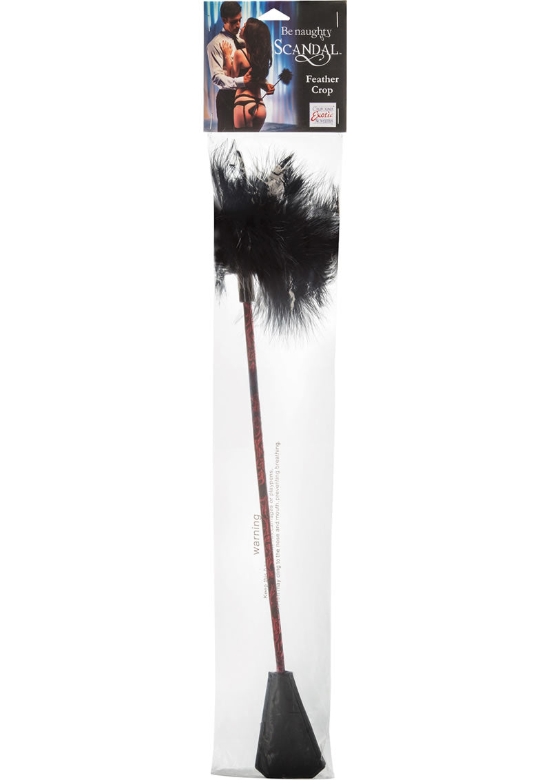 - Sturdy crop with designer accents on one end, tickling feather on the other end
